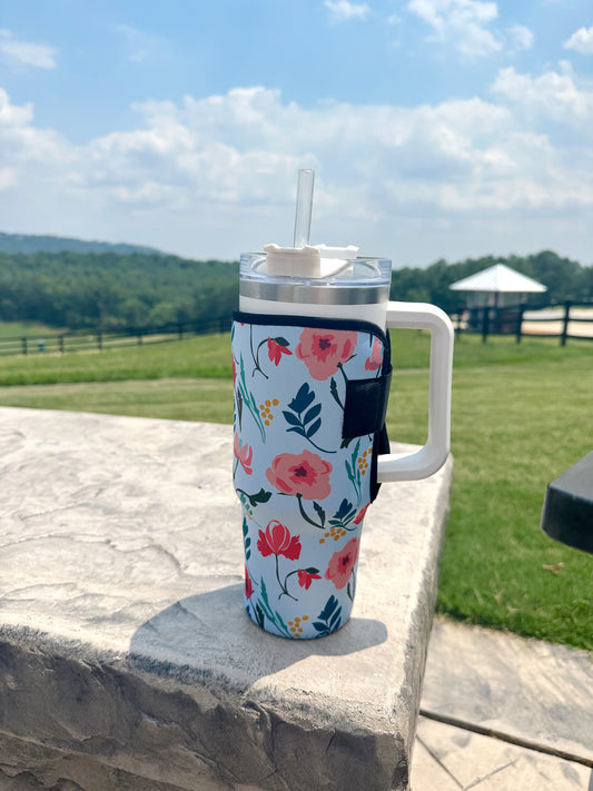 40 oz Tumbler Neoprene Sleeve- Light Blue Floral